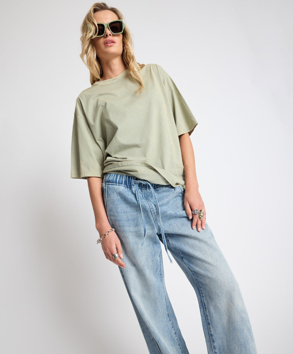 Roadhouse Wide Leg Drawstring Denim Jeans - Salty Dog