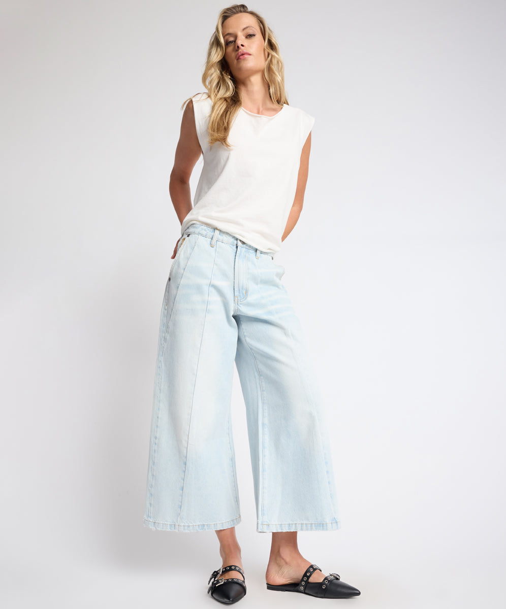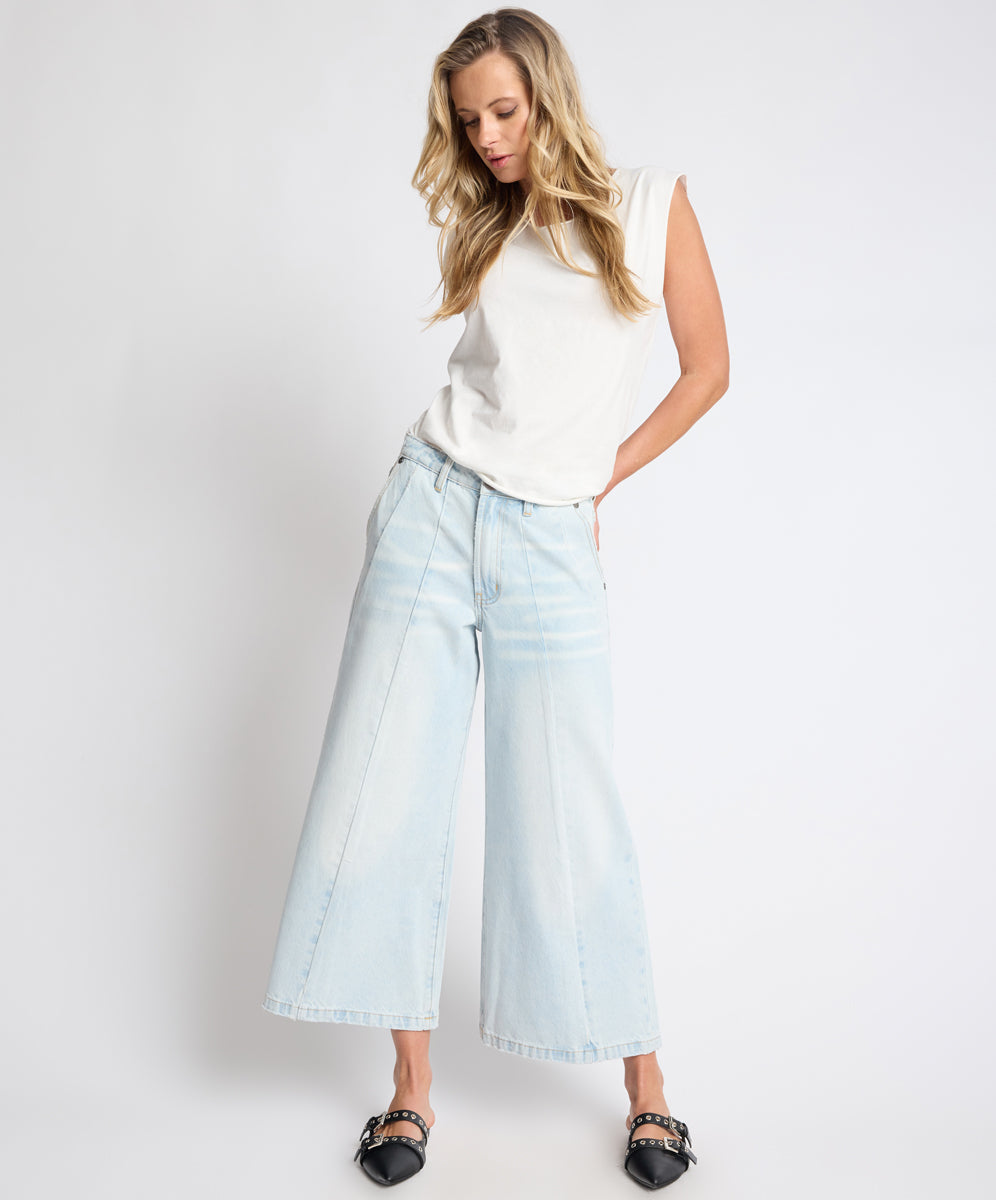 Hayden Mid Waist Wide Leg Cropped Denim Jeans - Bel Air Blue