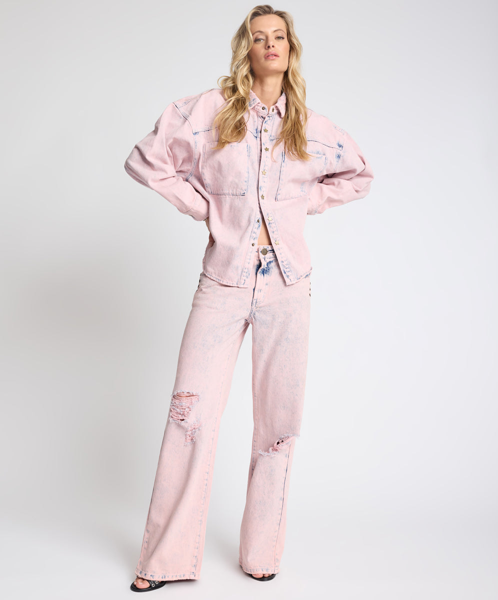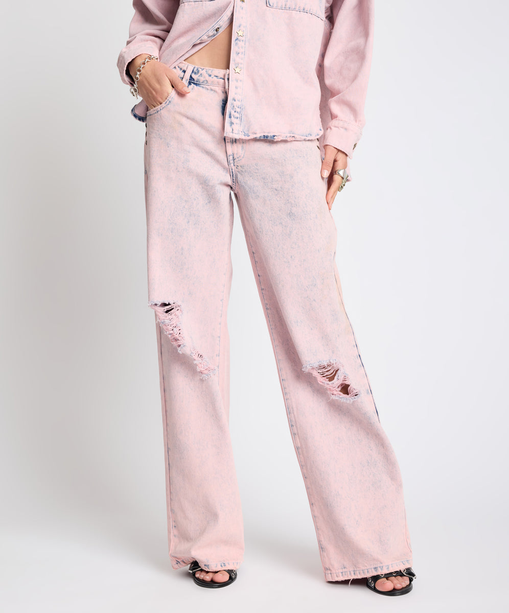 Low Riders Low Waist Wide Leg Denim Jeans - Pink Haze