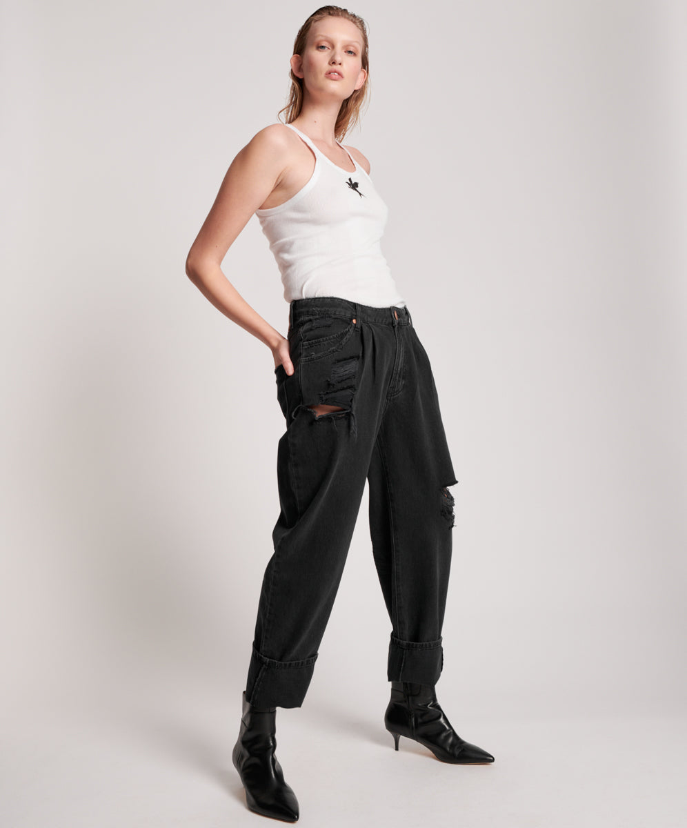 Saints Low Waist Boyfriend Denim Jeans - Dusty Smoke