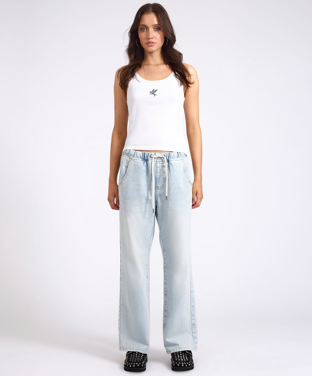 Roadhouse Mid Waist Wide Leg Drawstring Denim Jean - Blue Latte