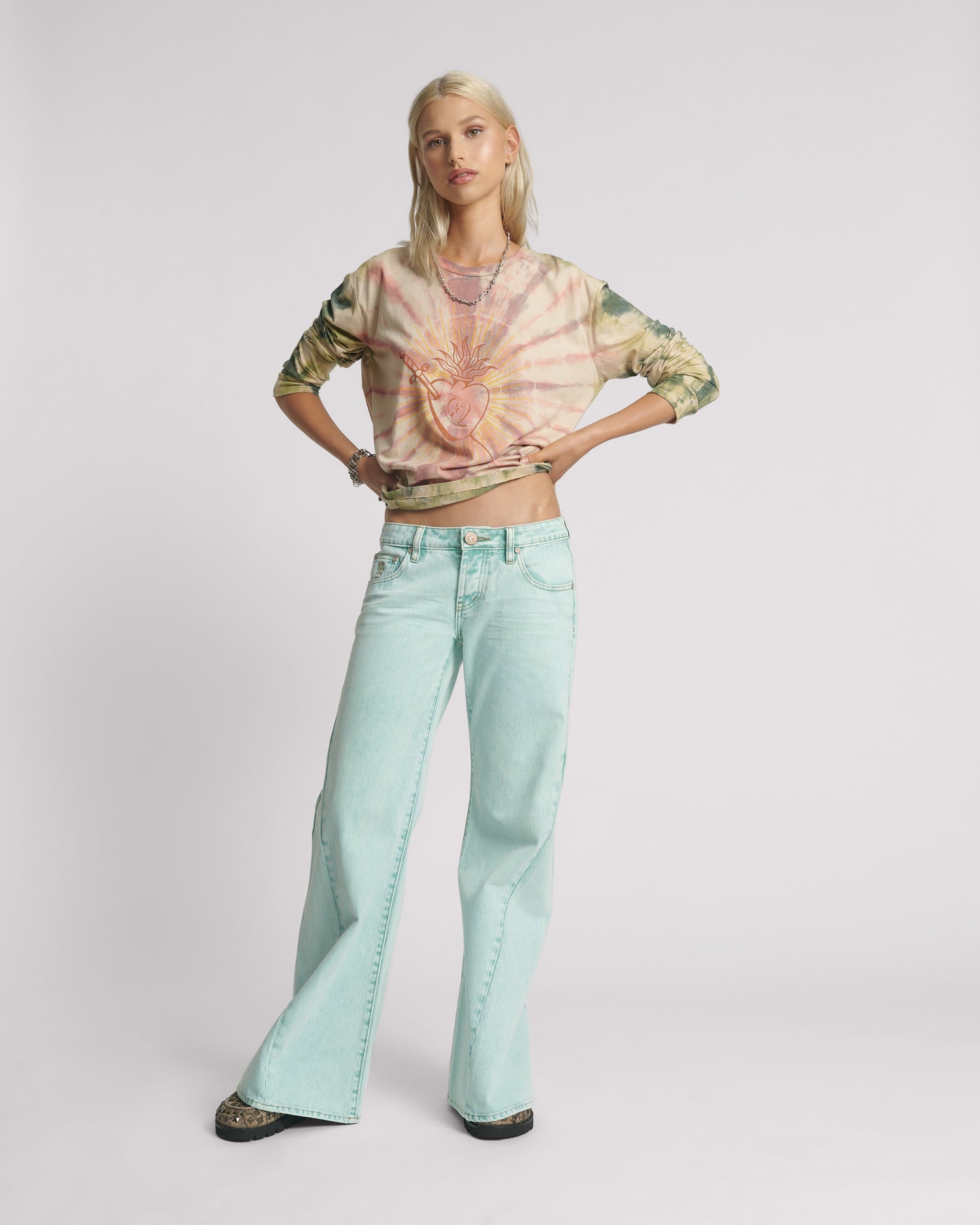 SUNSET CREATURES. 2024 Resort Collection. An ode to the untamed allure of the desert landscape. Creamy neutrals, dusty blues, and rustic tones that echo the dusky hues of a desert sunset. A contemporary capsule of the usual One Teaspoon casual western denim details, mixed with new timeless quiet luxury staples that blend sophisticated grit with a hint of playful charm.