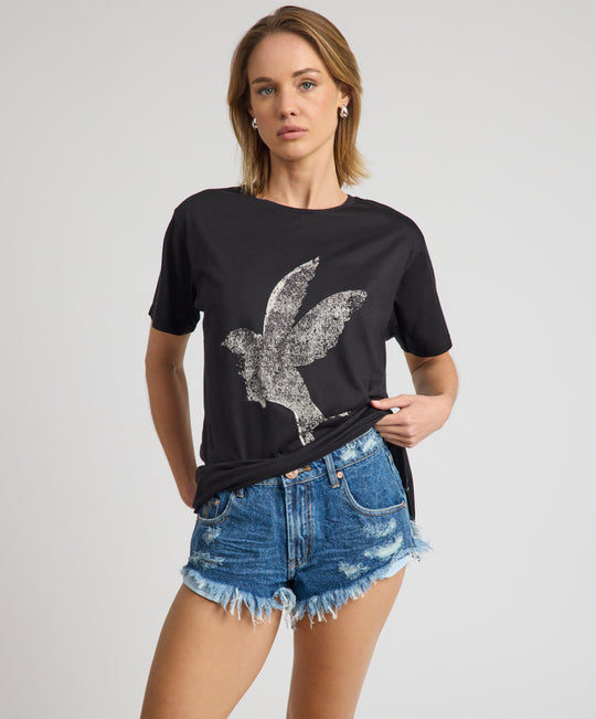 The BLACK BRUSHED BOWERBIRD BOYFRIEND TEE is a laid-back classic with signature One Teaspoon attitude. Relaxed, effortless and perfectly oversized, it’s the kind of tee you’ll reach for on repeat.