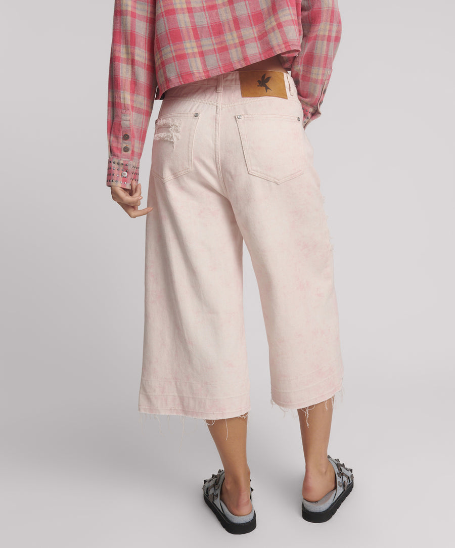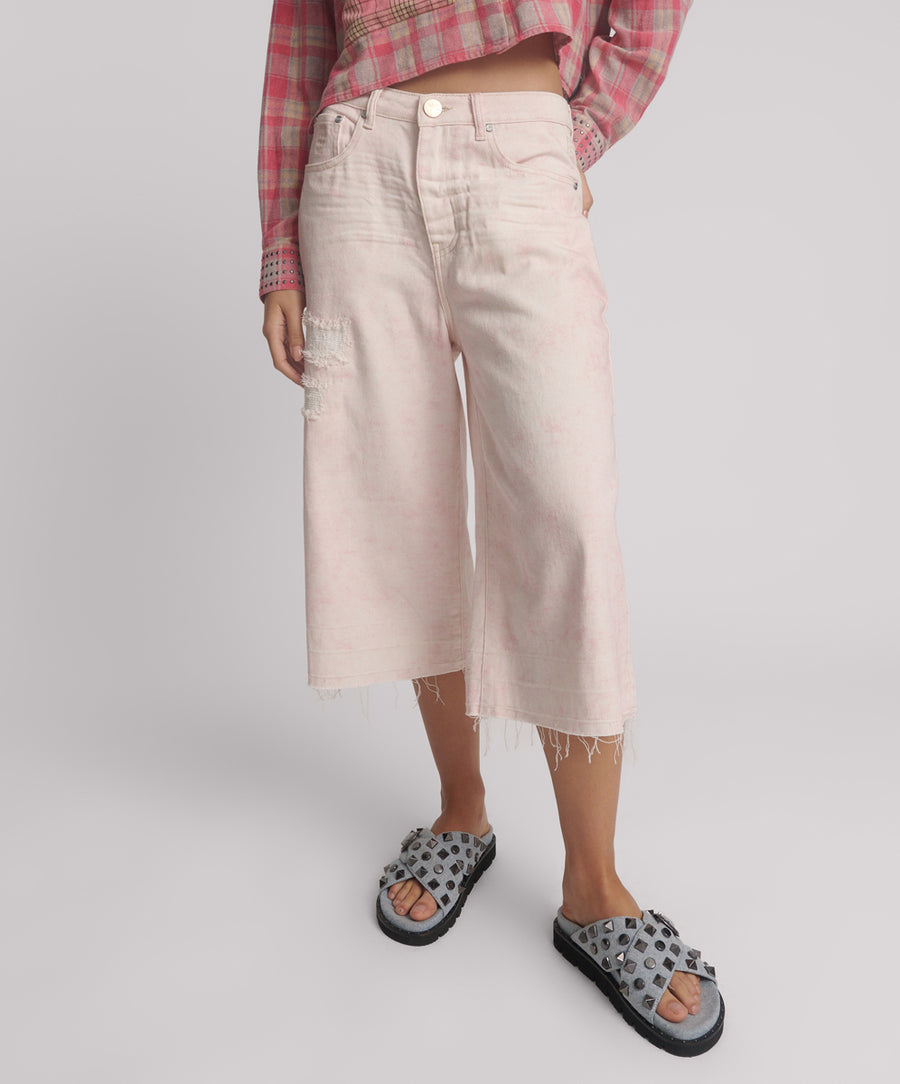 720'S Mid Waist Super Long Length Denim Shorts - Stone