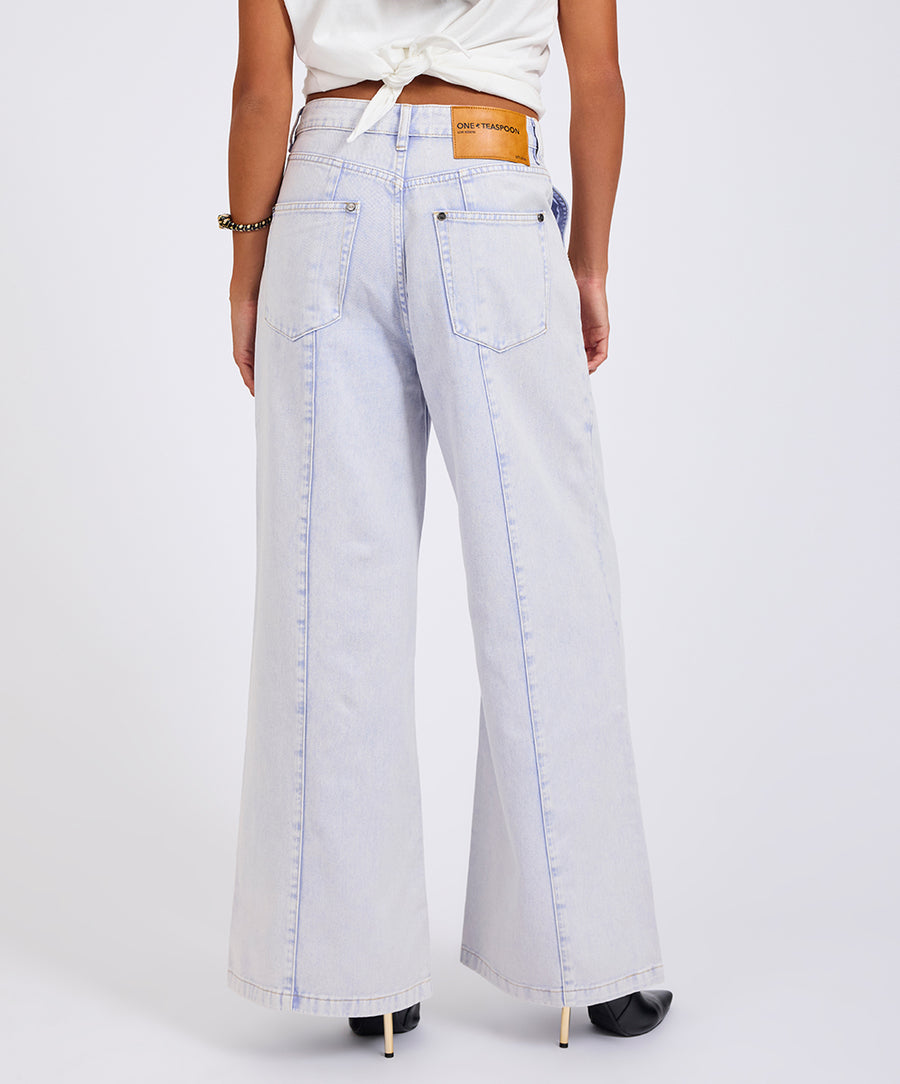 The LAVENDER BLUE HAYDEN HIGH WAIST WIDE LEG TROUSER DENIM JEANS deliver statement shape with soft colour. Tailored like trousers but washed in dreamy denim, they balance polish and play.