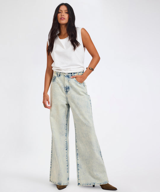 The BLUE LOVE MACHINES MID WAIST SUPER WIDE LEG DENIM JEANS are our 70s Studio 54–inspired statement jeans. A disco-ready silhouette in soft, structured denim — equal parts freedom and flair.