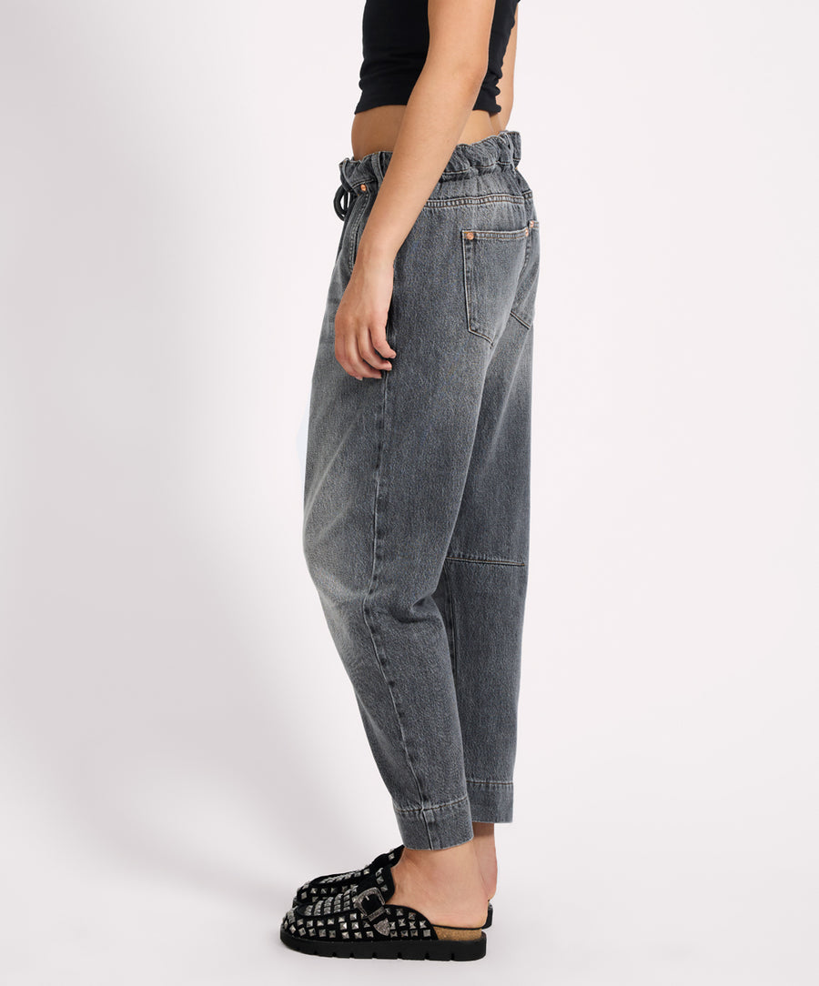 - Low waist with drawstring and elasticated waistband for a paper bag fit
