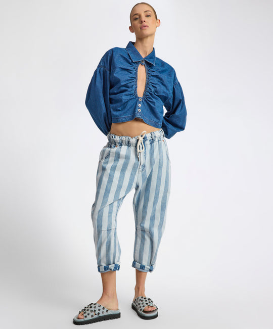 Outcasts Low Waist Drop Crotch Harem Denim Jeans - Beach Club Stripe